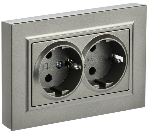 Розетка 2-ая с/з шампань IEK Brite (10/100)