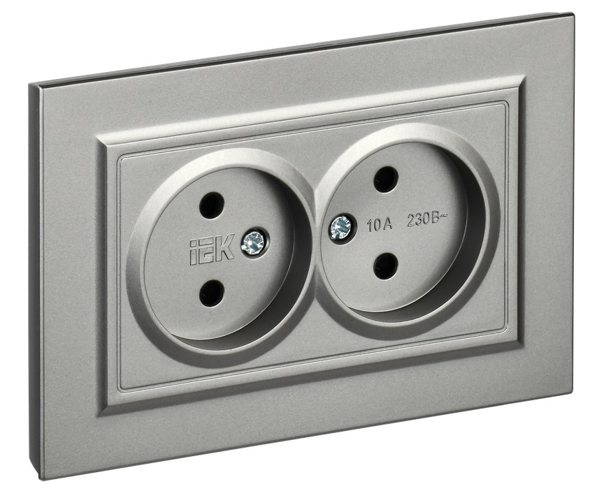 Розетка 2-ая б/з сталь IEK Brite (10/100)