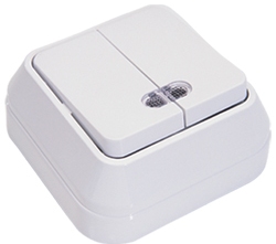Выключатель Makel накладной 2 кл. белый подсветка (10/100)