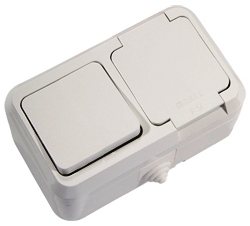 Блок Makel IP44 Выкл. 1ОП + Розетка 1ОП белый (6)