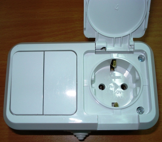 Блок Makel IP44 Выкл. 2ОП + Розетка 1ОП белый (6)