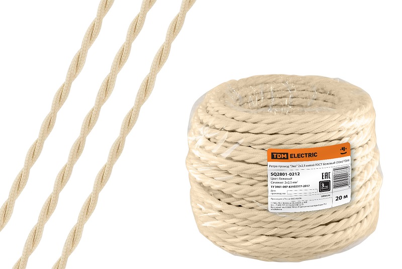 Провод витой 2х2,5 бежевый TDM ГОСТ ретро (20)