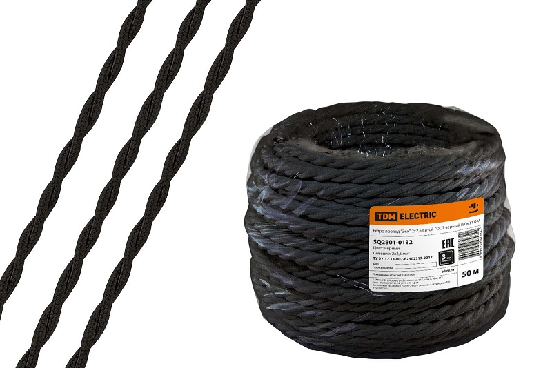 Провод витой 2х2,5 черный TDM ГОСТ ретро (50)