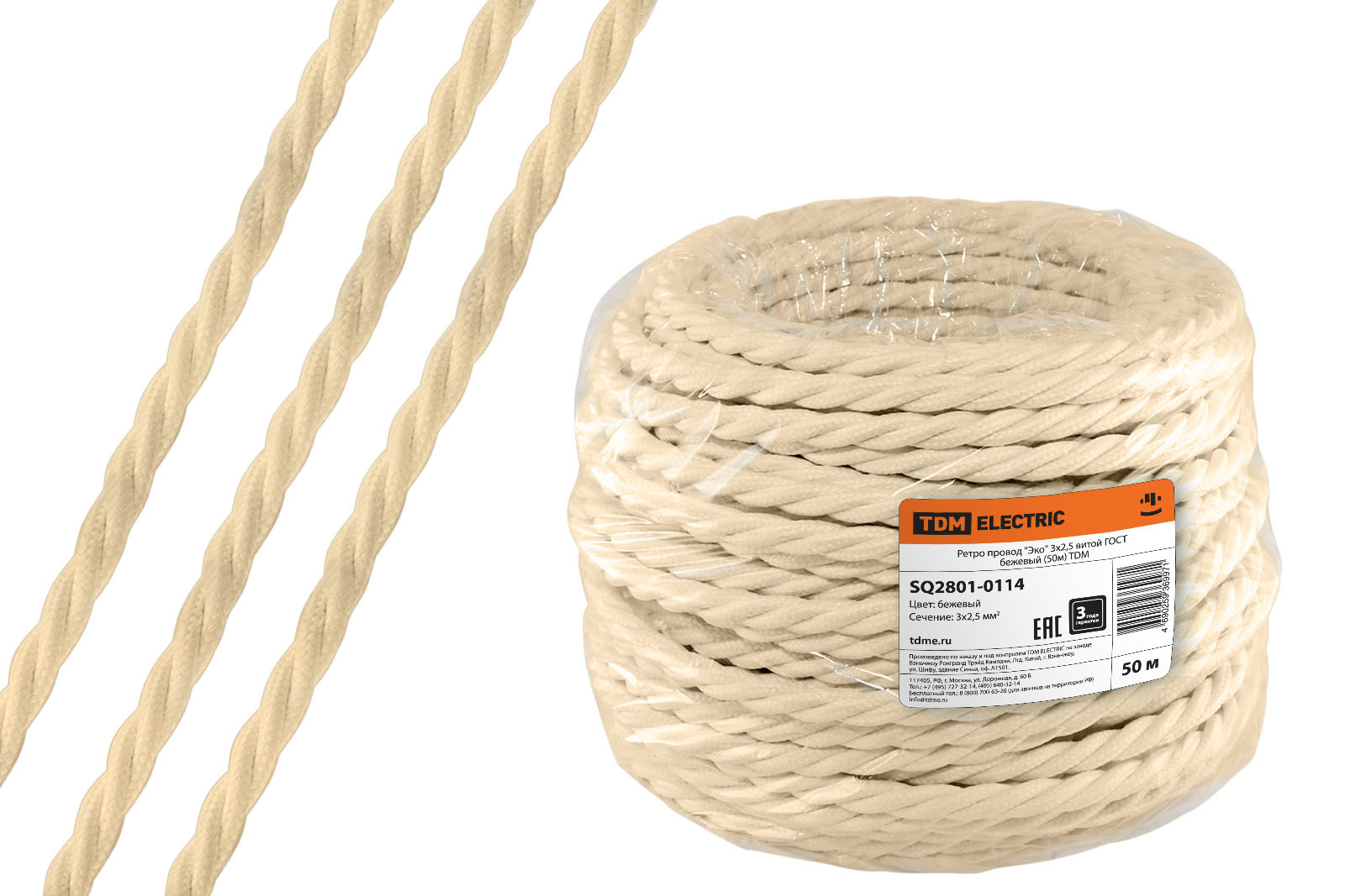 Провод витой 3х2,5 бежевый TDM ГОСТ ретро (50)