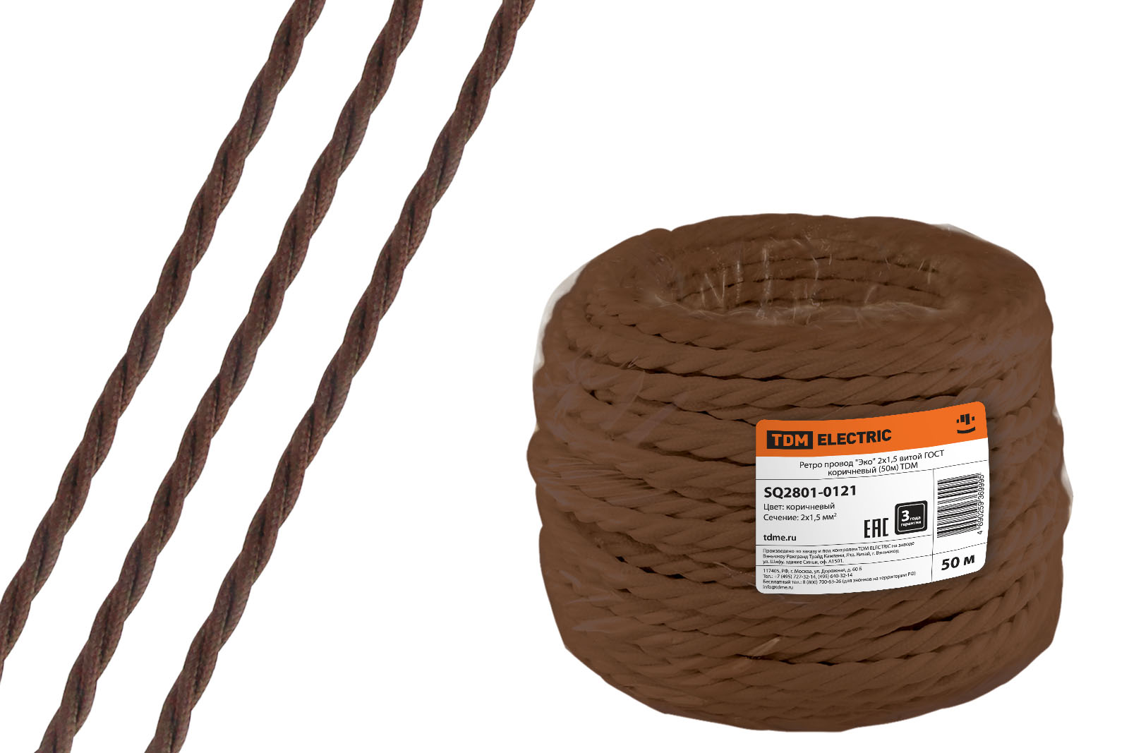 Провод витой 3х2,5 коричневый TDM ГОСТ ретро (20)