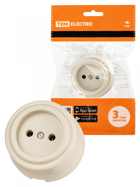 Розетка ретро б/з слоновая кость пластик 10А TDM Виви (6/36)