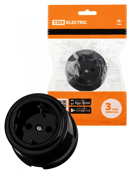 Розетка ретро с/з черная пластик 16А TDM Виви (6/36)