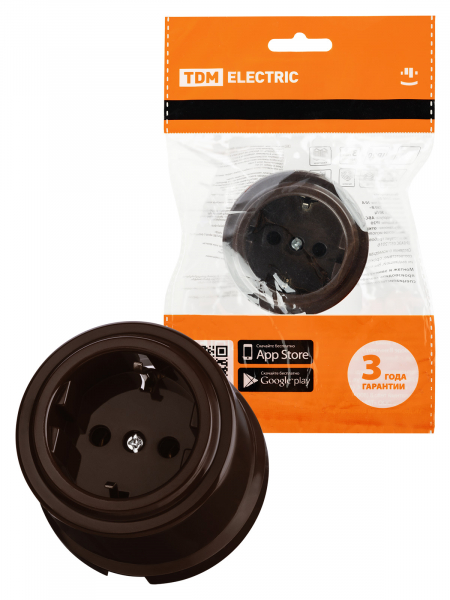Розетка ретро с/з коричневая пластик 16А TDM Виви (6/36)
