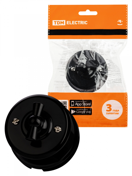 Выключатель ретро 2-кл. 10А черный пластик TDM Виви (6/36)