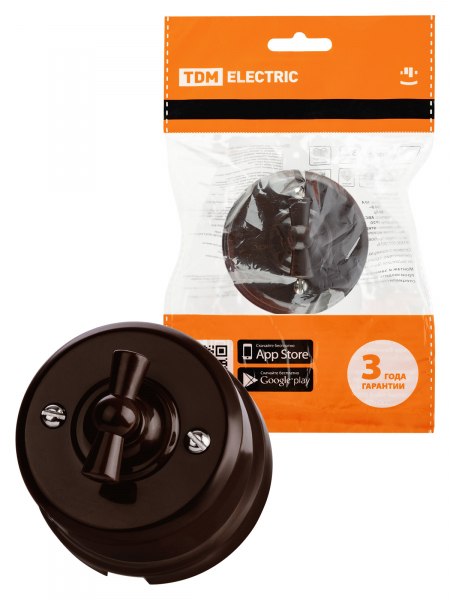 Выключатель ретро 2-кл. 10А коричневый пластик TDM Виви (6/36)