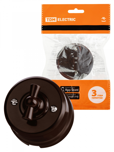 Выключатель ретро проходной 10А коричневый пластик TDM Виви (6/36)