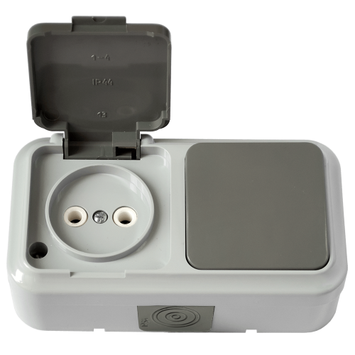 Блок Пралеска Аква 1кл. + розетка б/з IP54 серый (30)