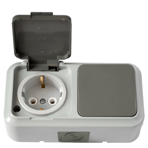 Блок Пралеска Аква 1кл. + розетка с/з IP54 серый (25)