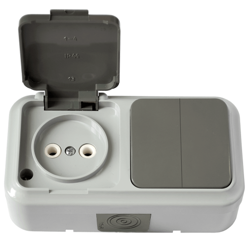 Блок Пралеска Аква 2кл. + розетка б/з IP54 серый (30)
