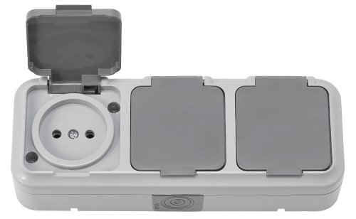 Розетка Пралеска Аква 3-ая IP54 б/з серый (26)