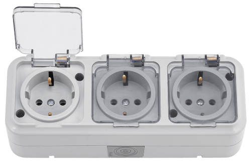Розетка Пралеска Аква 3-ая IP54 с/з серый прозрачная крышка (21)