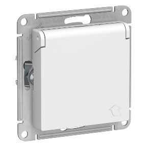 Механизм розетки Atlas 1-ая с заземлением шторки крышка белый (15)