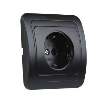 Розетка Smartbuy Марс чёрный 1-ая с заземлением керамика (10/200)