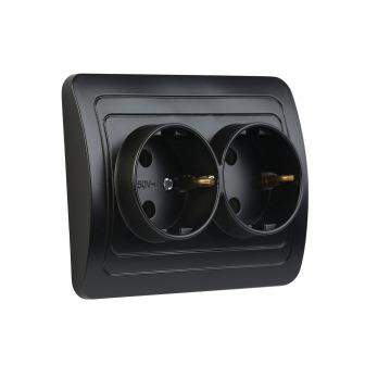 Розетка Smartbuy Марс чёрный 2-ая с заземлением (10/200)