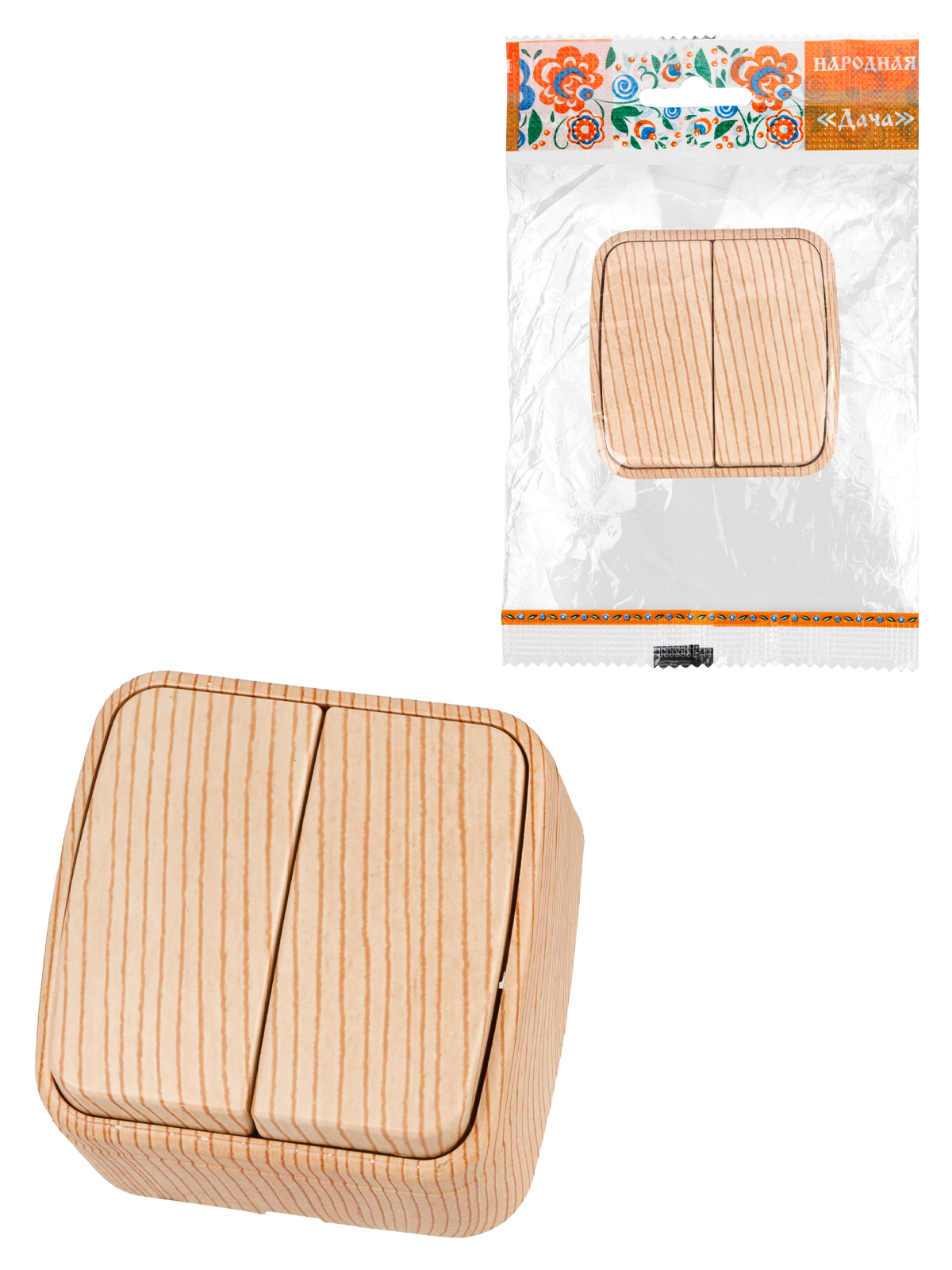 Выключатель TDM Дача 2кл. сосна (10/100)