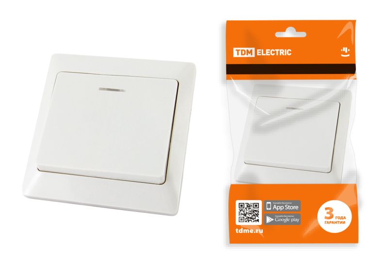 Выключатель TDM Ильмень 1кл. белый с подсветкой (10/100)