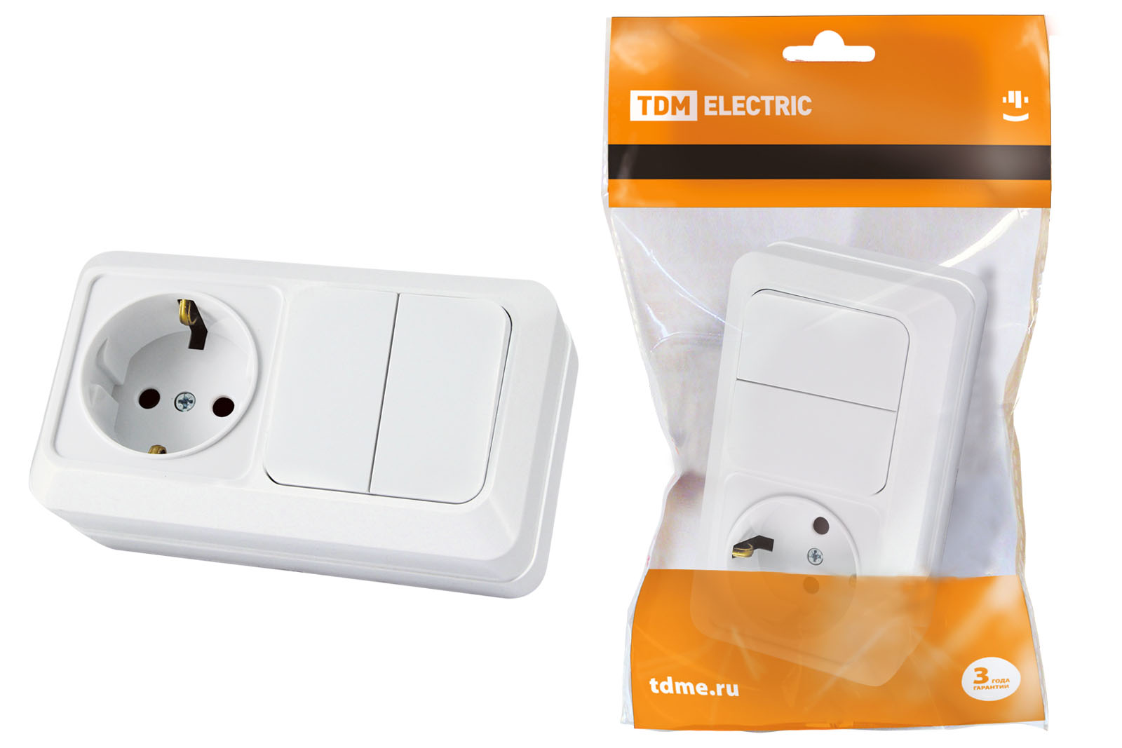 Блок TDM Ладога 2кл.+розетка с/з белый (10)