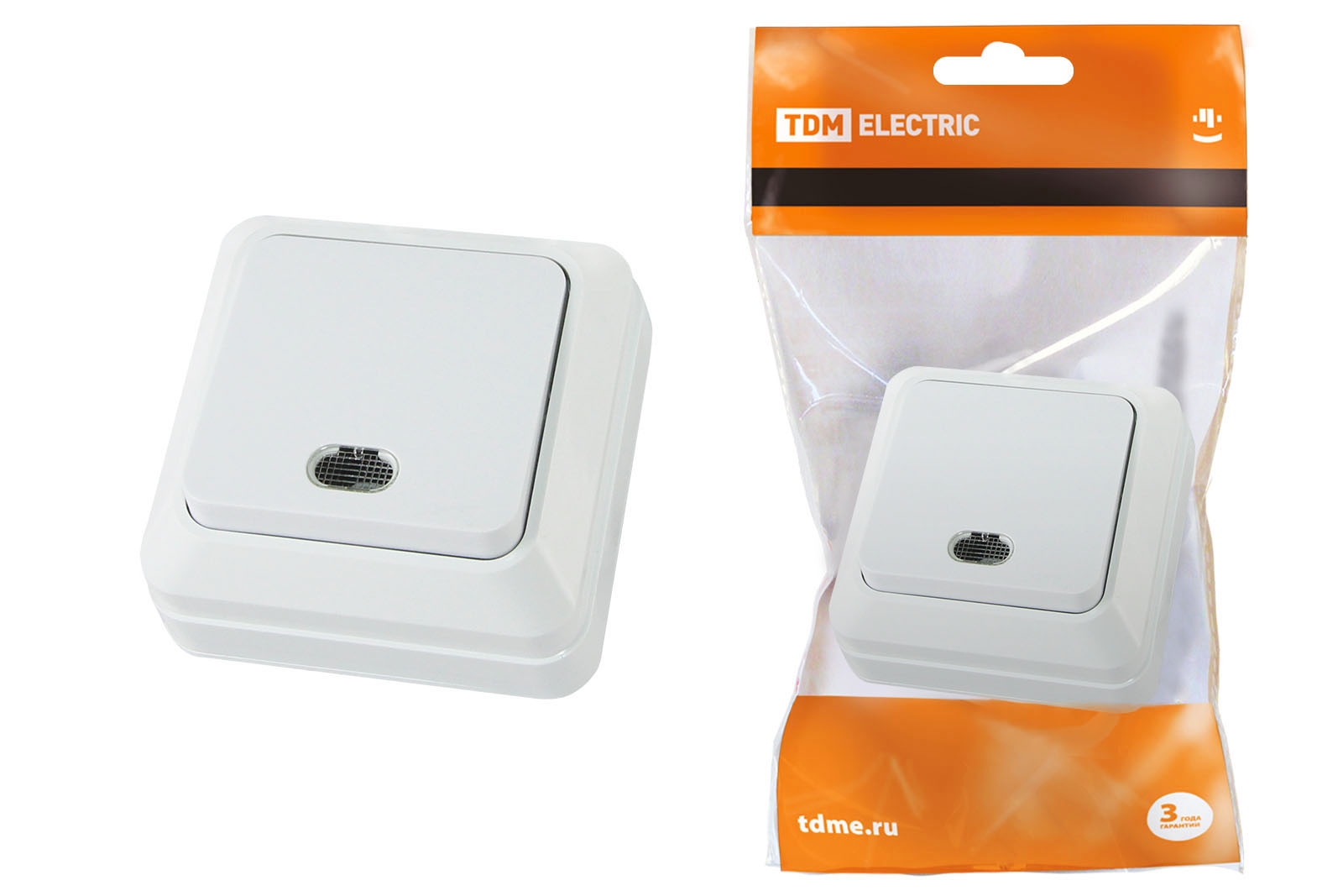 Выключатель TDM Ладога 1кл. белый подсветка (10/200)