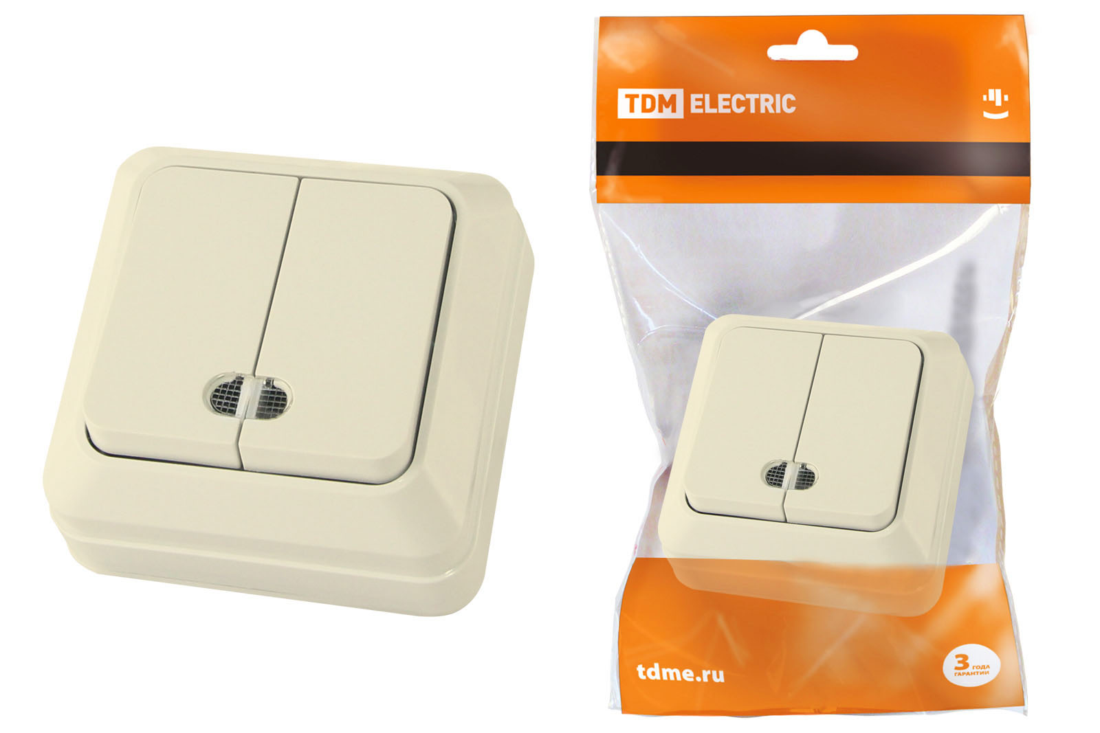 Выключатель TDM Ладога 2кл. крем подсветка (10/200)