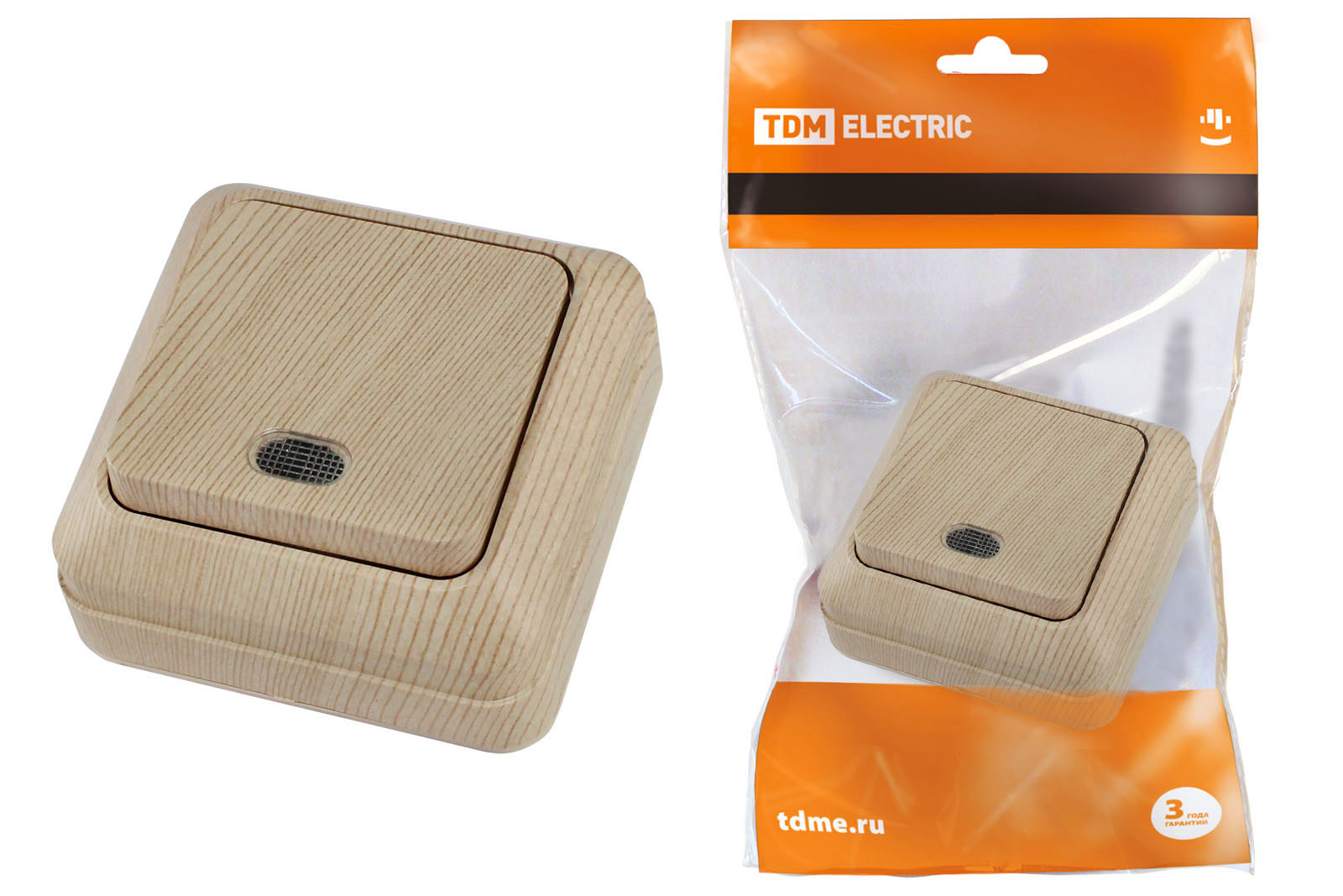 Выключатель TDM Ладога 1кл. сосна подсветкой (10/200)