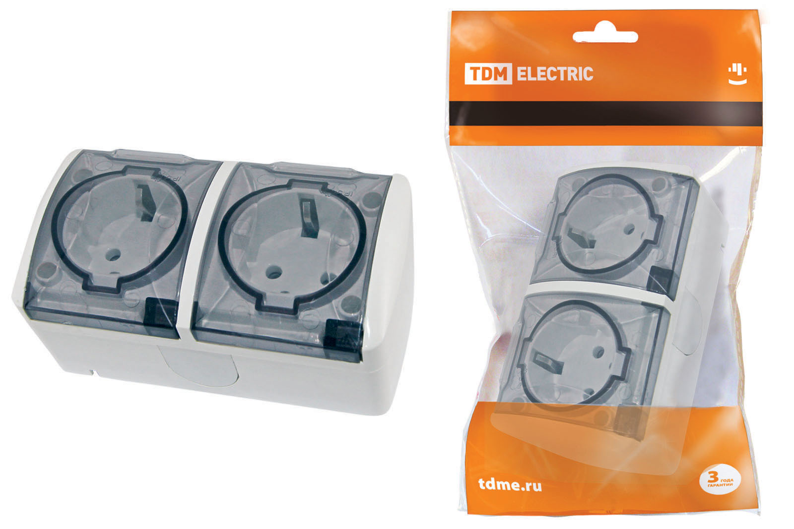 Розетка Селигер 2-ая с/з с крышкой IP54 белый TDM (5)
