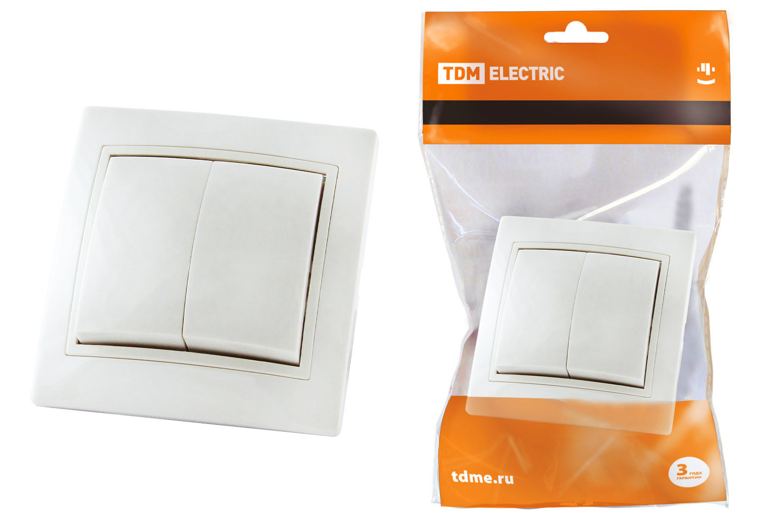 Выключатель ТDM Таймыр 2кл. белый (10/100)