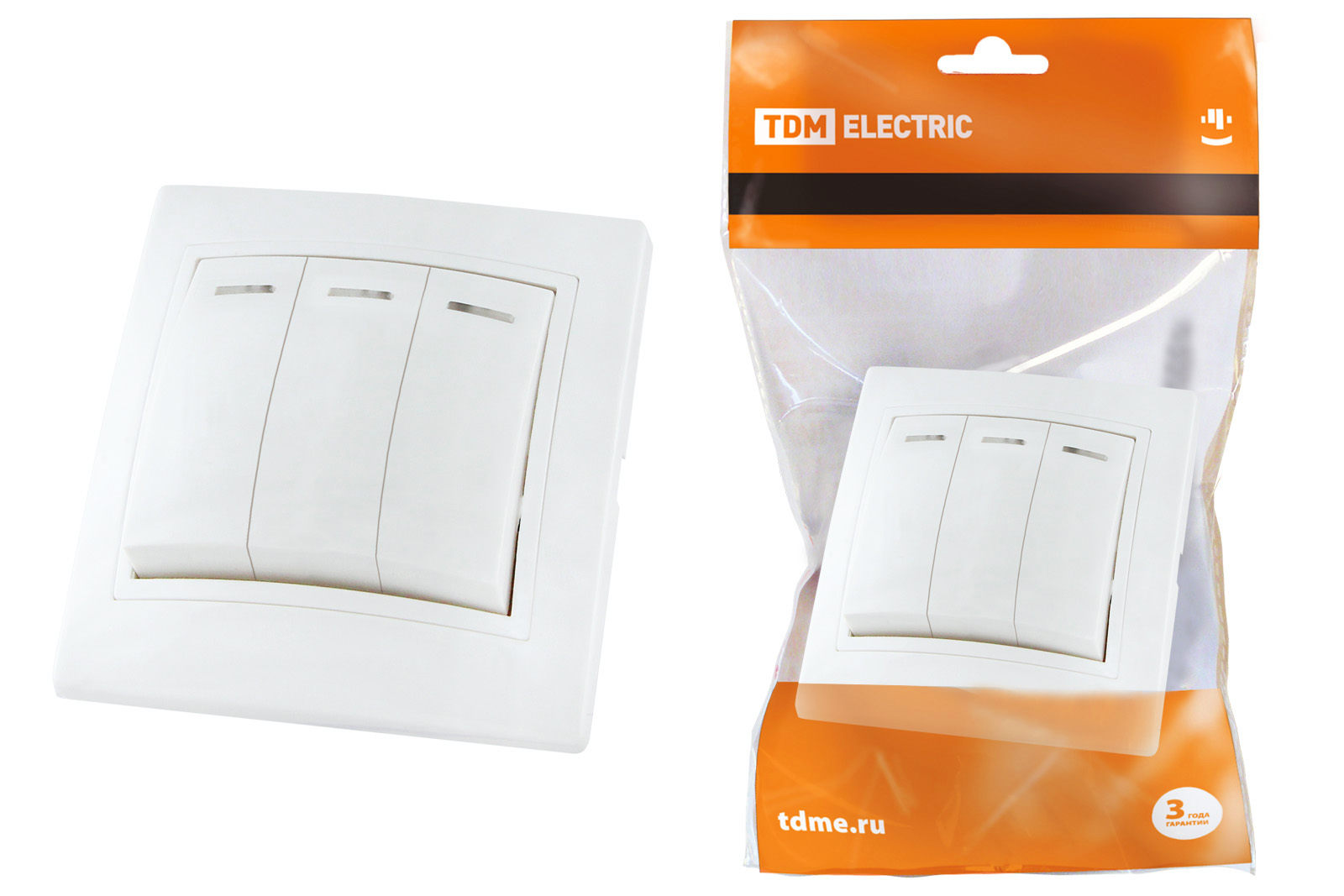 Выключатель TDM Таймыр 3кл. белый с подсветкой (10/200)