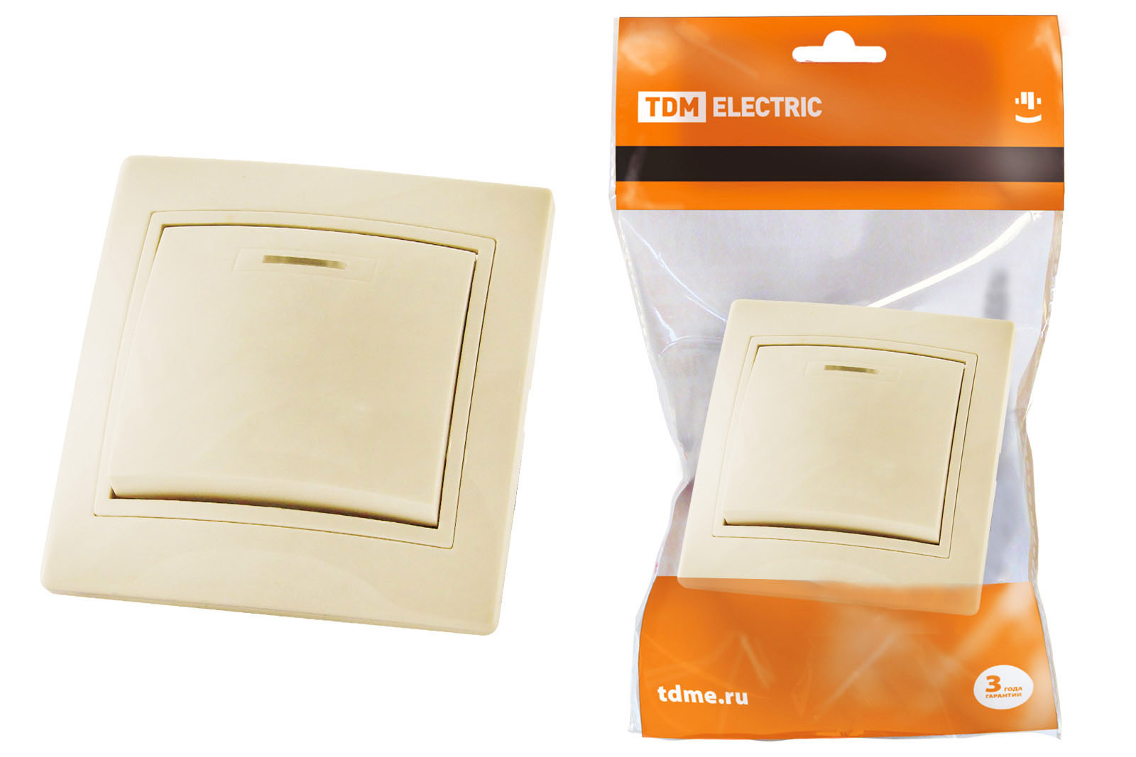Выключатель TDM Таймыр 1кл. слоновая кость с подсветкой (10/200)