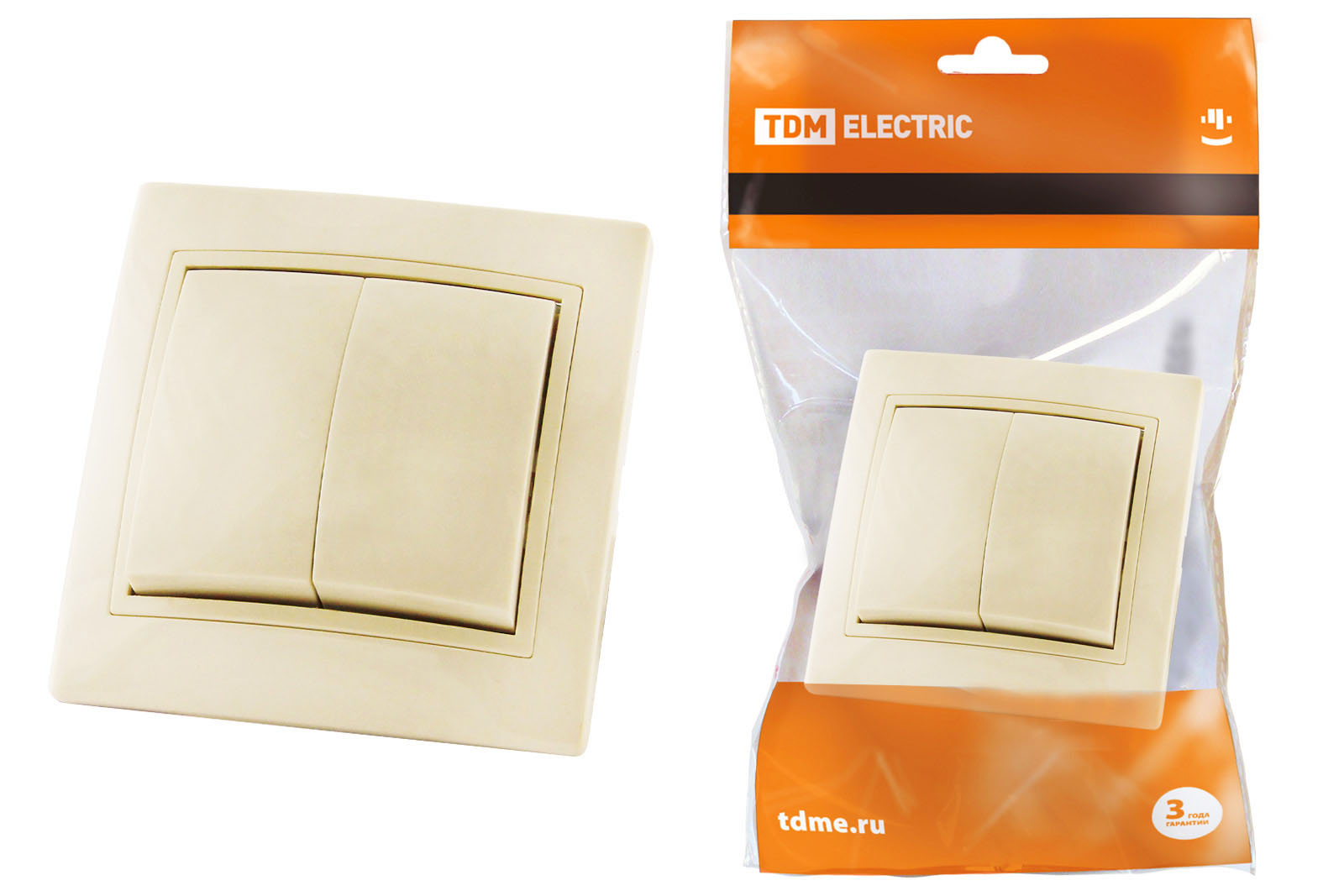 Выключатель TDM Таймыр 2кл. крем (10/200)