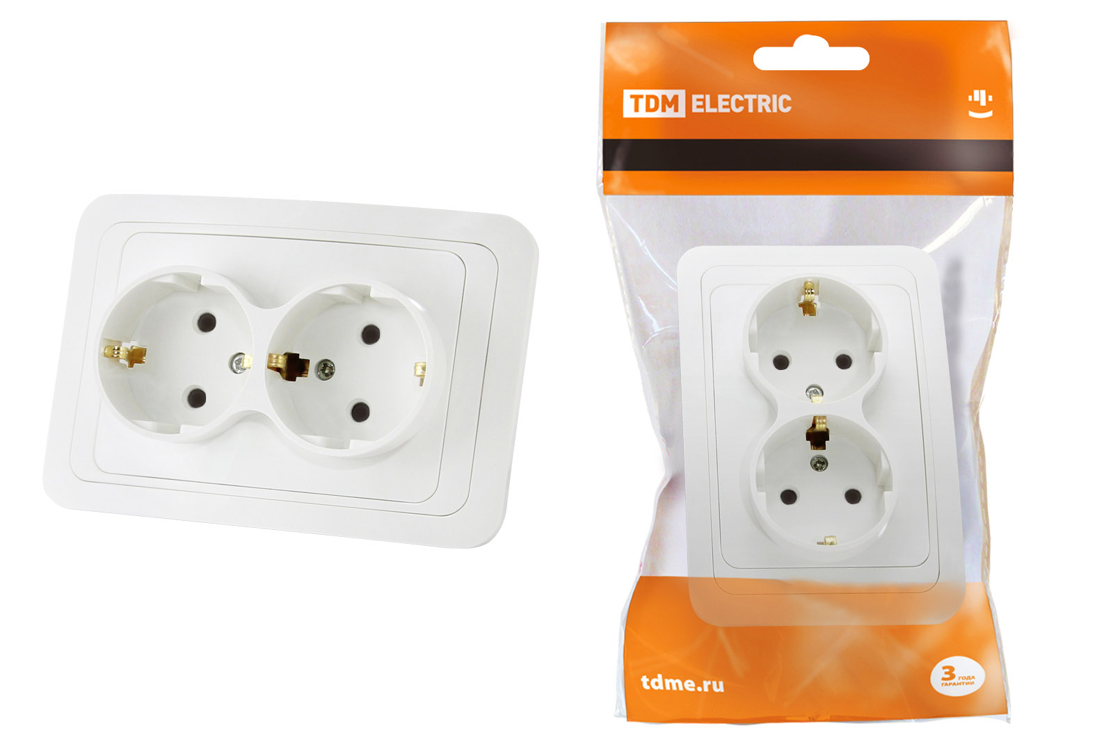 Розетка TDM Валдай 2-ая белая с/з (10/200)