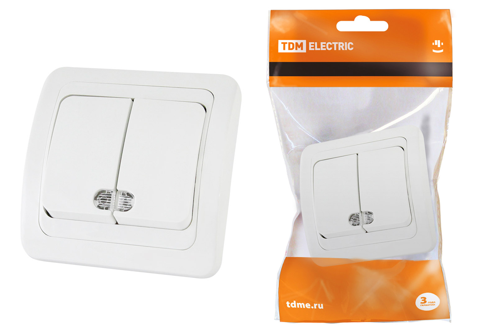 Выключатель TDM Валдай 2кл. белый подсветка (10/200)