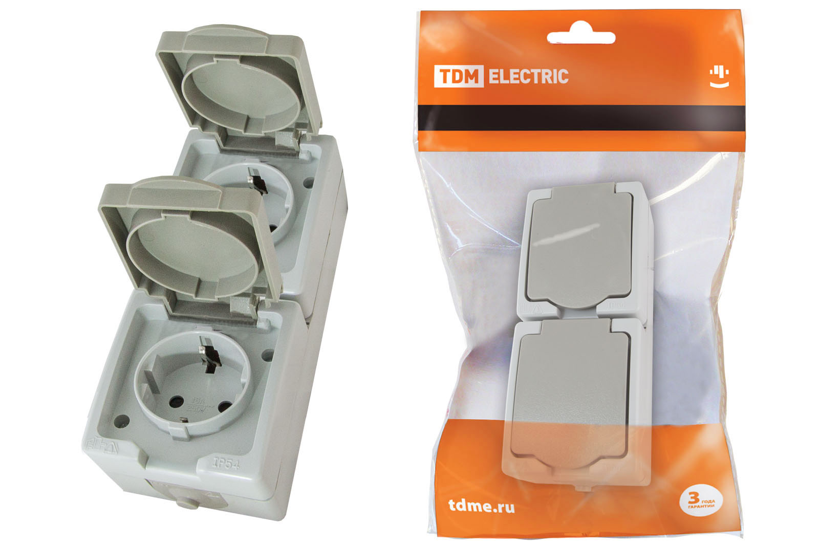 Розетка Вуокса 2-ая с/з IP54 вертикальная TDM (10)