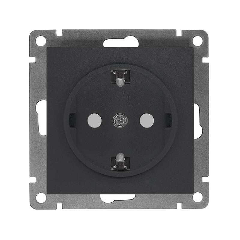 Механизм розетки Афина 1-ая с заземлением шторки графит (10)