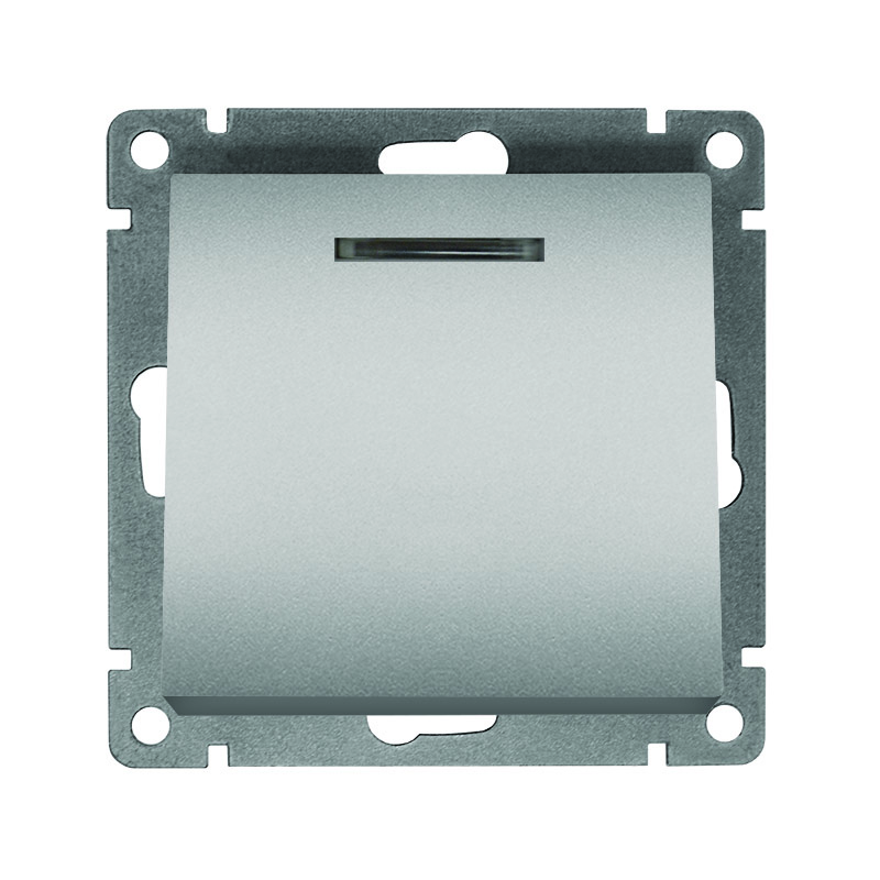 Механизм выключателя Афина 1кл подсветка серебро (10/100)