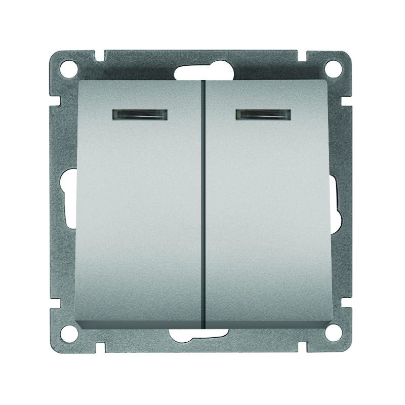 Механизм выключателя Афина 2кл подсветка серебро (10/100)