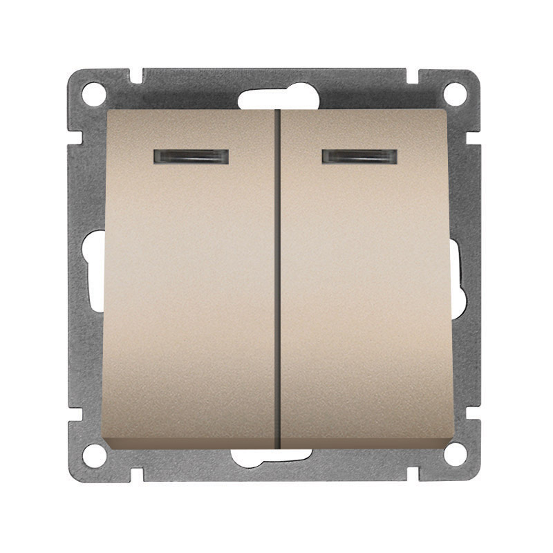 Механизм выключателя Афина 2кл подсветка шампань (10/100)