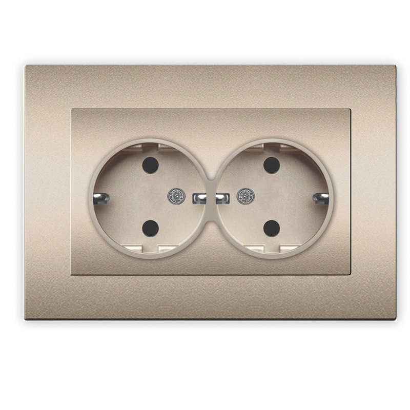Розетка Афина 2-ая с заземлением шампань (10/100)