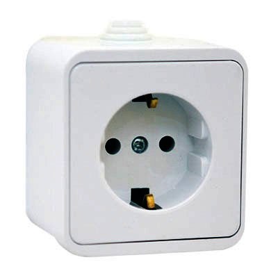 Розетка Клио 1-ая белый с/з IP44 (10)