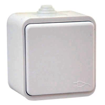 Розетка Клио 1-ая белый с/з крышка IP44 (10/200)