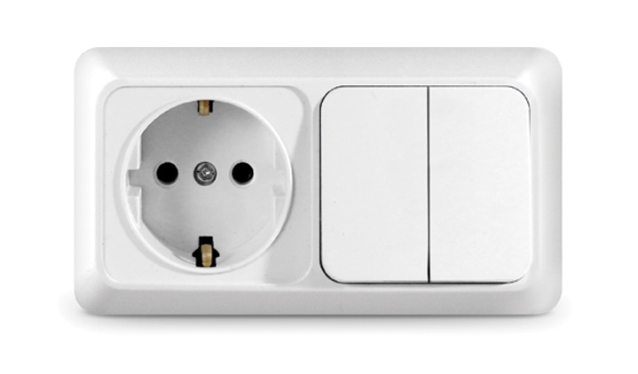 Блок Олимп горизонтальный 2кл. + розетка с/з белый (5/50)