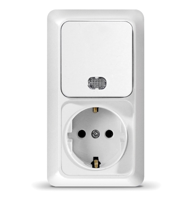 Блок Олимп вертикальный 1кл. подсветка + розетка с/з белый (5)