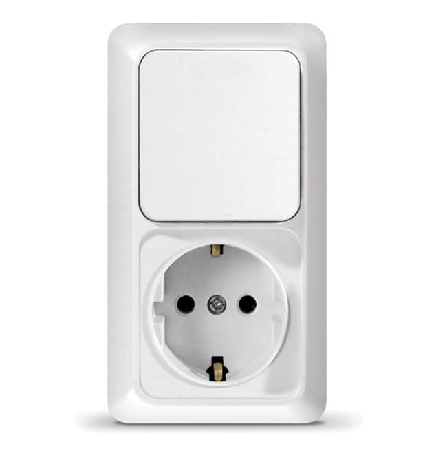 Блок Олимп вертикальный 1кл. + розетка с/з белый (5)
