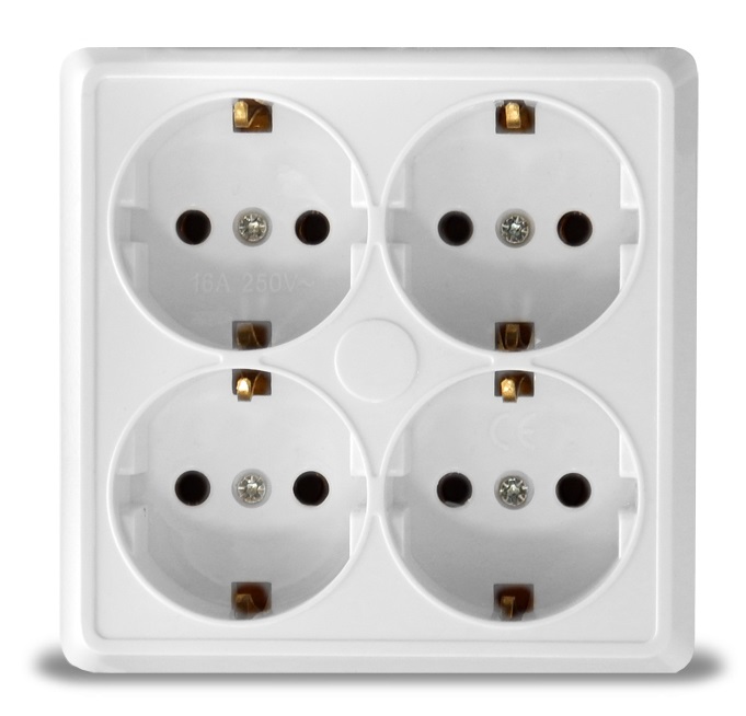 Розетка Олимп 4-ая белый с/з квадрат (10/100)