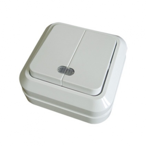 Выключатель Олимп 2кл. белый подсветка (10/200)