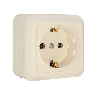 Розетка Олимп 1-ая с заземлением слоновая кость (10/100)